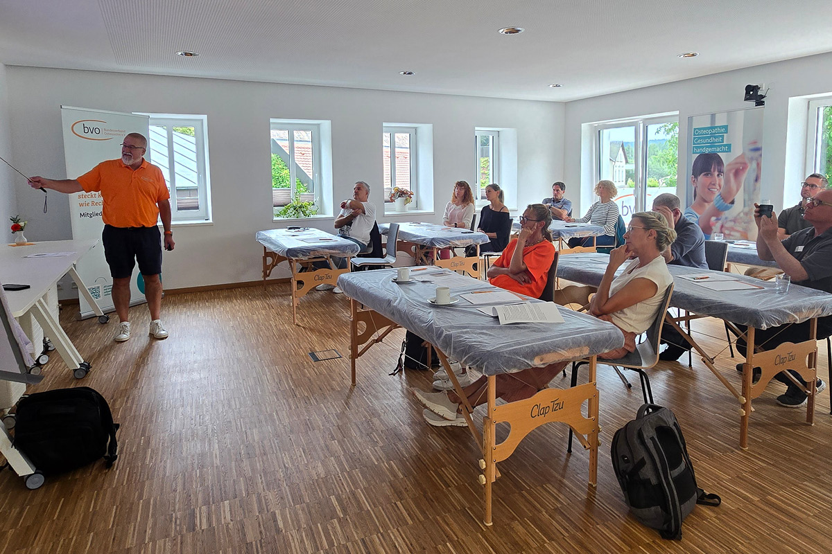 - Ein Workshop mit Fachvortrag zum Thema „Mobilisation des Mittelohres“ von bvo-Vorstand Lutz M. Scheuerer informierte Osteopathinnen und Osteopathen.